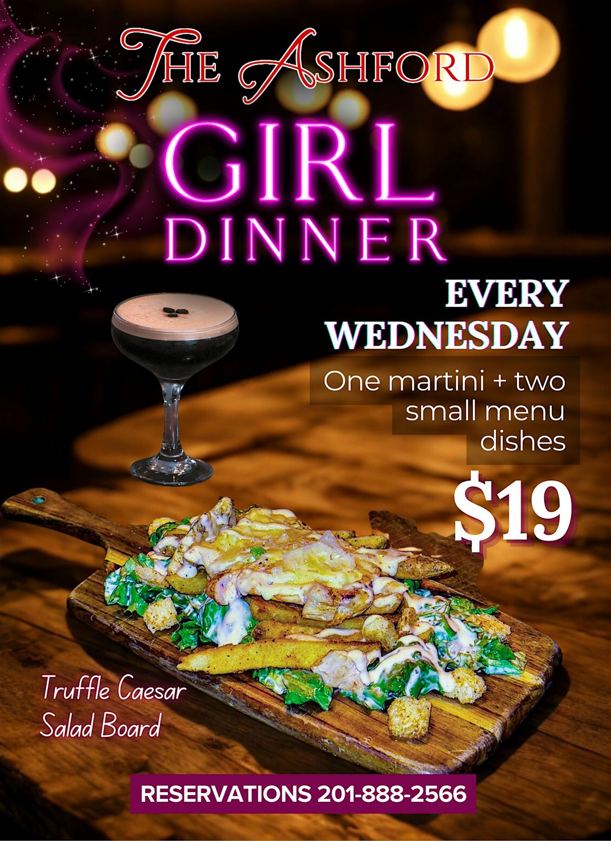 GIRL DINNER WEDNESDAYS AT THE ASHFORD | MARTINI + BITES FOR $19