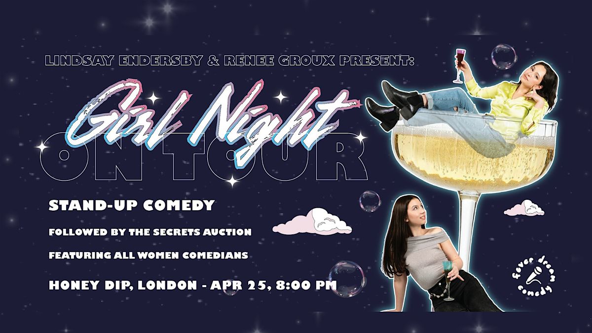 Girl Night is a night of live stand-up comedy featuring a lineup of all women comedians from all over Ontario. This is your chance to see critically acclaimed acts and rising stars all wrapped up in a fun environment curated for women but enjoyed by all! Fall in love with your hosts Lindsay and Renee, see incredible comedy, then play the Secrets Auction where you bid for local prizes with your juicy secrets and confessions. This is THE girl's night out you've been looking for!