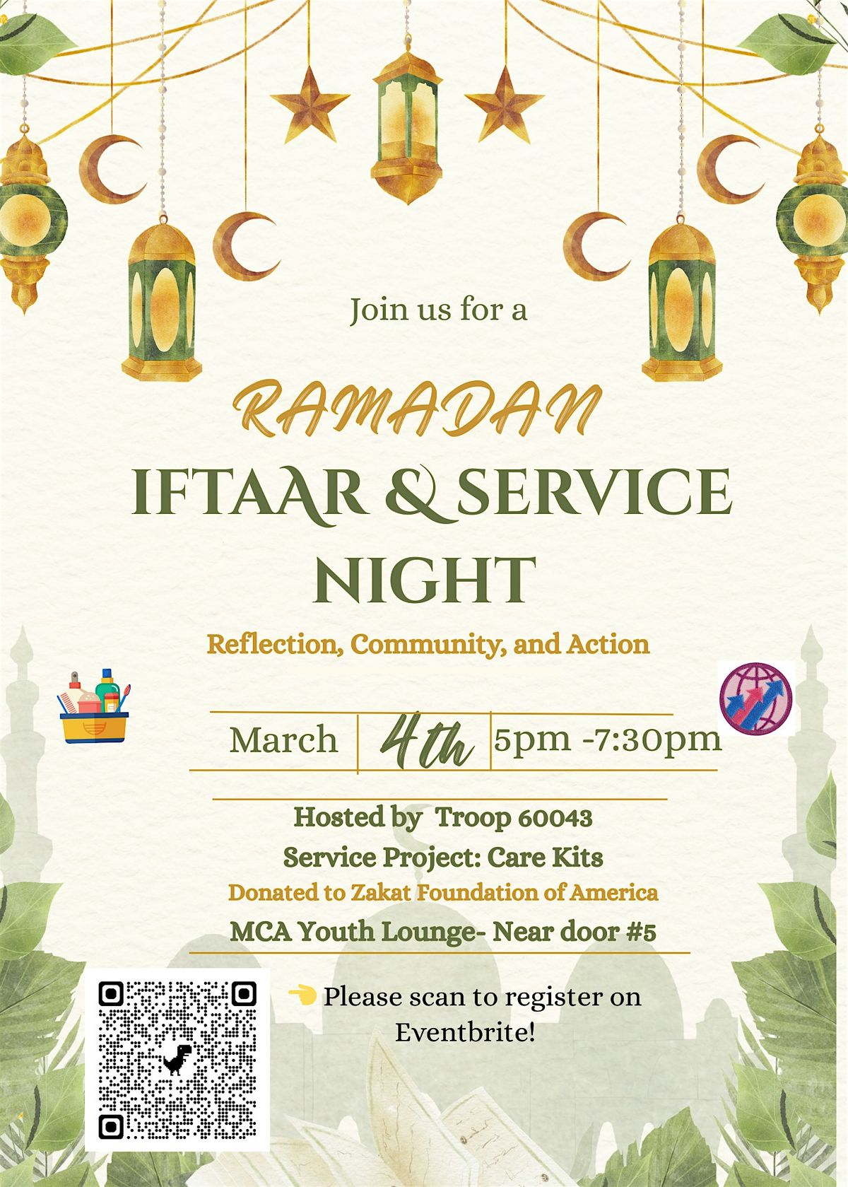 Join us for a meaningful Girl Scout Iftaar & Service Night focused on compassion, community and action. Whether you’re a Girl Scout or just want to make a difference, everyone’s welcome!