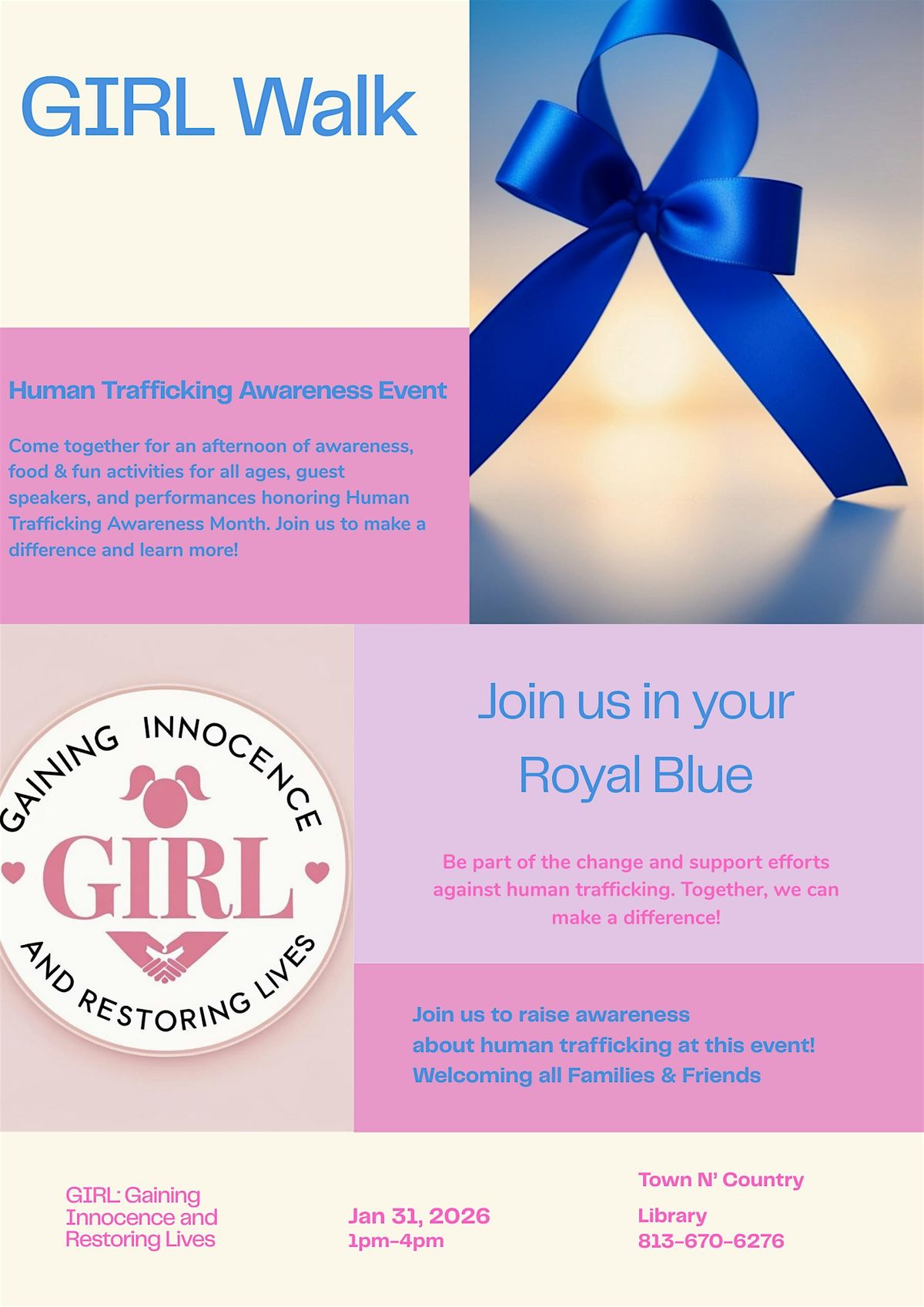 Join us for a walk to raise awareness for human trafficking. This is a family friendly event with activities , food , fun and guest speakers