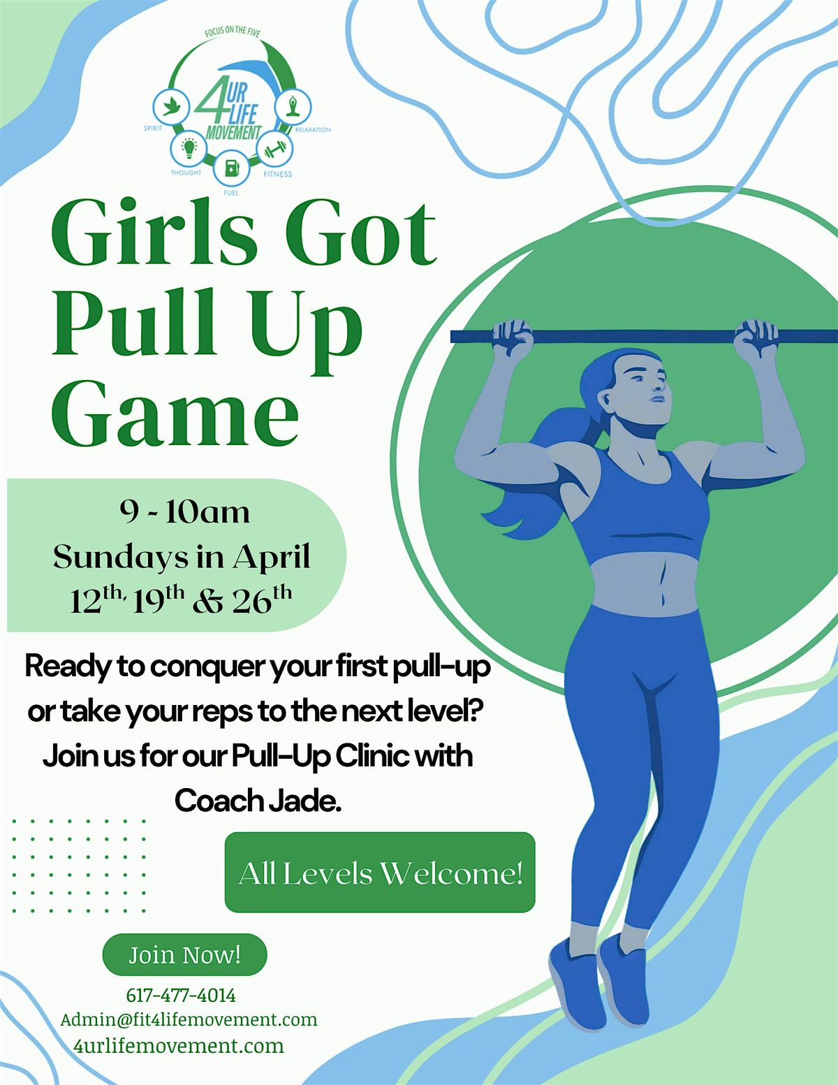 Our annual 3-Week Pullup Clinic “Girls Got Pullup Game” is back at 4UrLife Movement, and it’s designed for women who want to get stronger together while mastering one of the most empowering movements in fitness: the pullup.