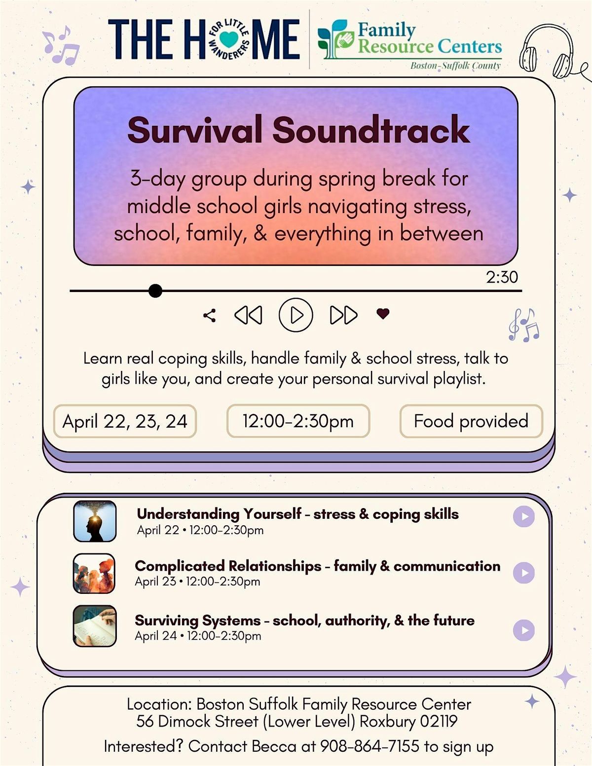 Hey middle school girls! Learn real coping skills, handle family & school stress, talk to girls like you, and create your personal survival playlist.