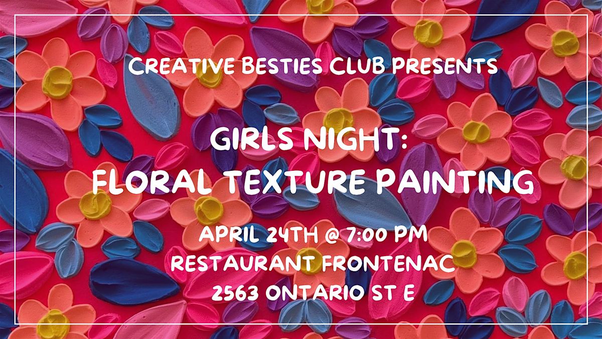 Come join us for a fun and creative night where you’ll connect with other amazing women and create your own textured floral canvas.