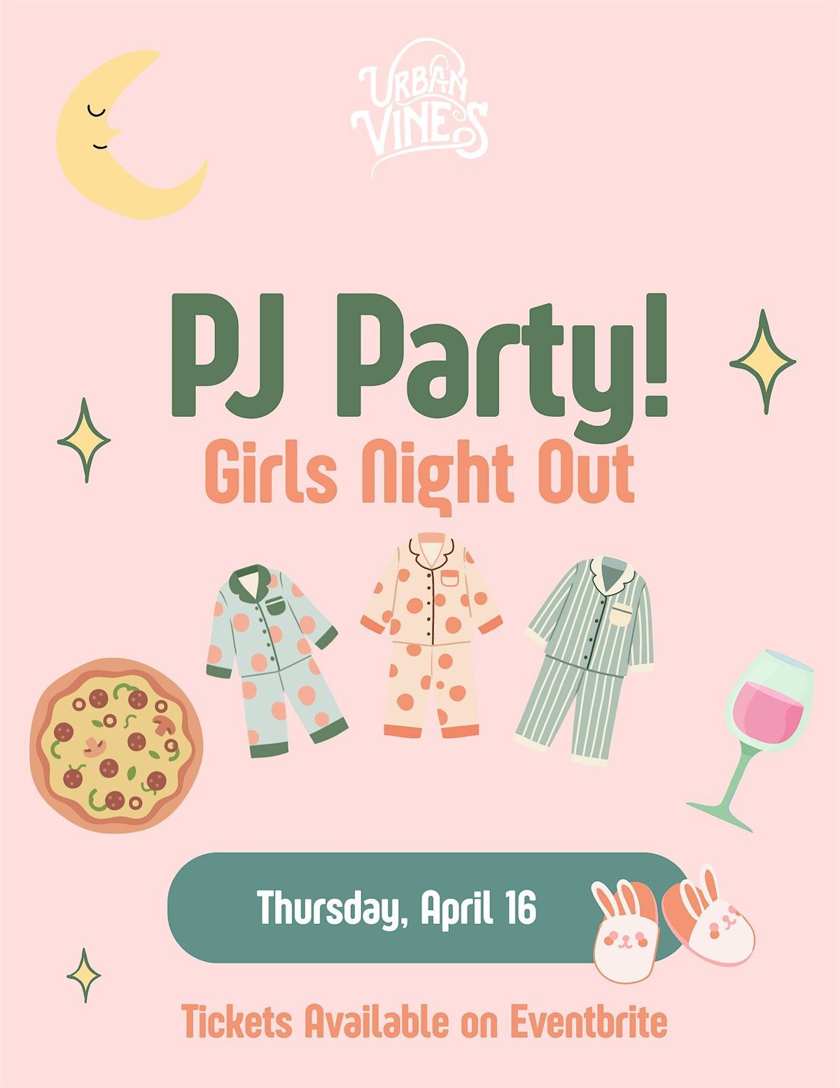 Grab your coziest pajamas, fuzzy slippers, and your best girlfriends for a night that blends childhood nostalgia with college-night fun. We’re turning Urban Vines into the ultimate grown-up slumber party!