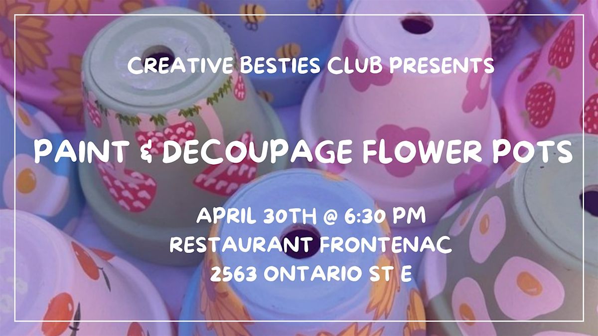 Rejoins-nous pour une soirée créative et conviviale où tu pourras peindre et décorer (découpage) ton propre pot de fleurs tout en rencontrant d’autres femmes incroyables.