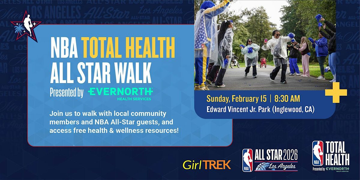 Join GirlTREK and the NBA on Sunday, February 15, 2026, for the second NBA Total Health All-Star Walk presented by Evernorth Health Services. We’ll gather at Edward Vincent Jr. Park to tip off a two-mile-loop and a celebration of health, wellness, and community.