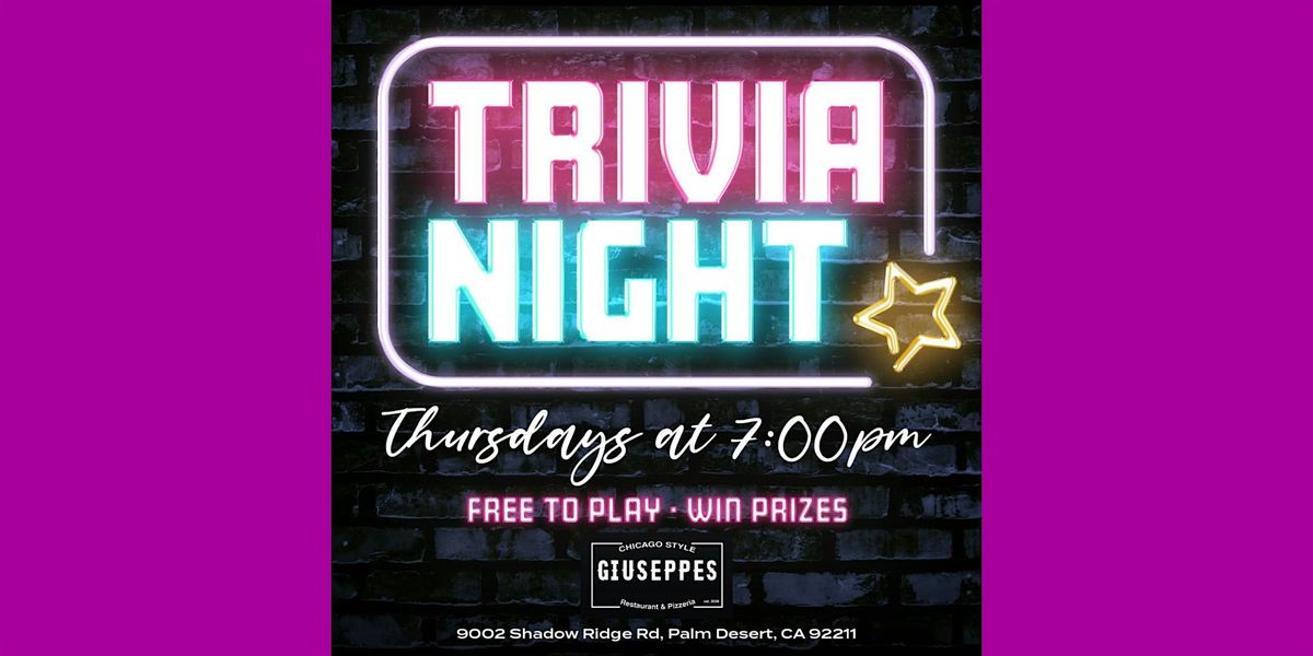 Welcome to Giuseppe's Thursday Night Trivia at Giuseppe's Restaurant and Pizzeria on Shadow Ridge Road! Join us Every Thursday at 7pm for an evening of fun, food, and brain-teasing questions. Test your knowledge on a variety of topics while enjoying delicious food and drinks.