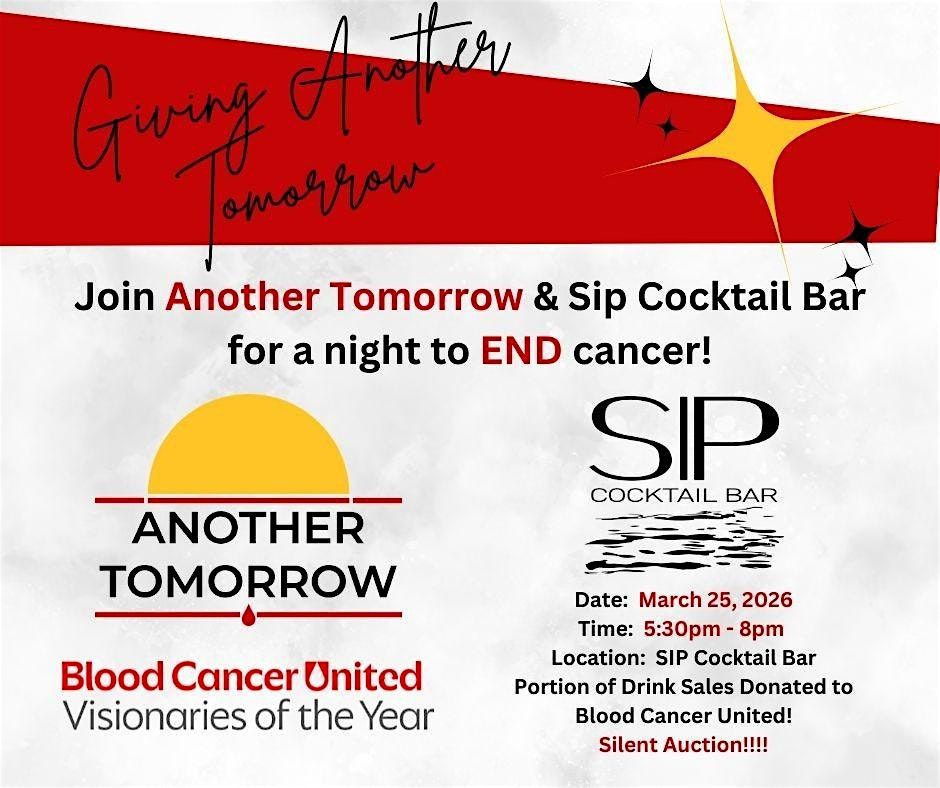 Come hang out with us in person at one of the best roof top cocktail bars in town. We will be having red themed drinks in honor of Blood Cancer United fundraising efforts along with silent auction items.