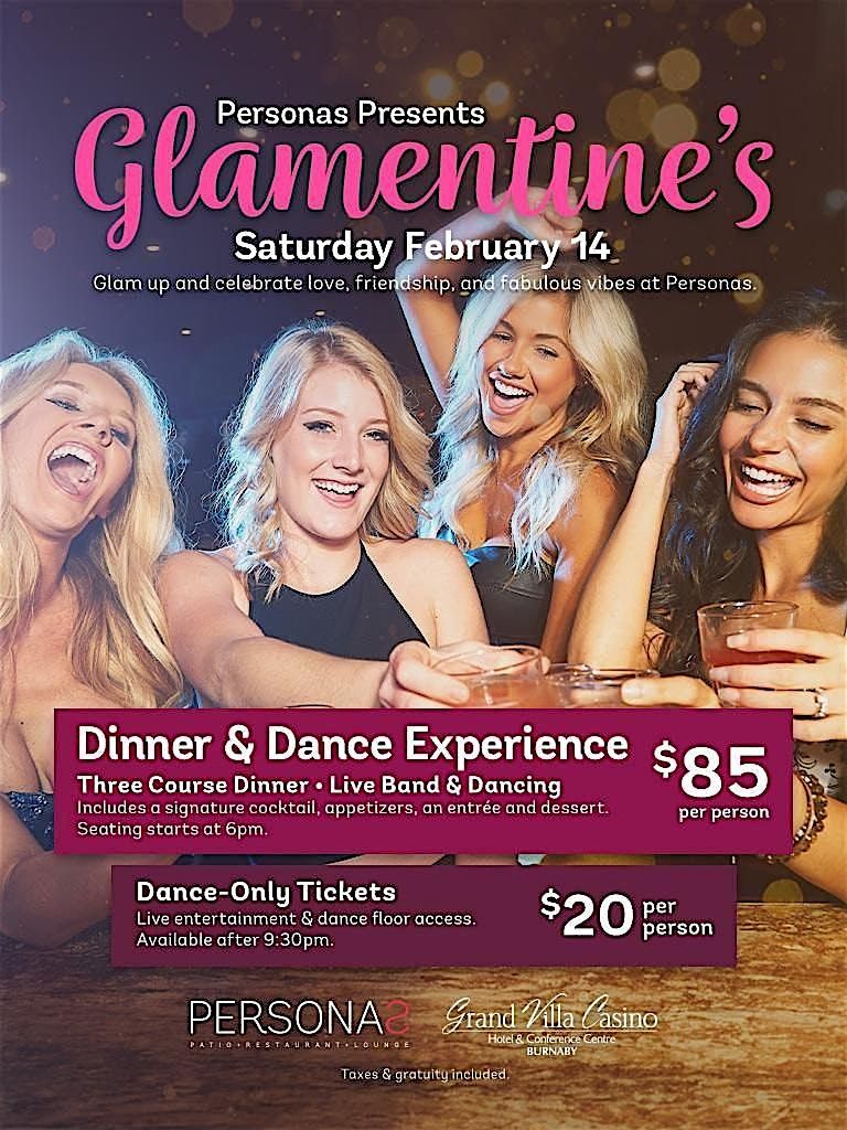 Dinner & Dance : $85 per person, chef curated three course menu, feature cocktail, free-play, chance to win prizes and Live Band entertainment. *inclusive of tax and gratuity