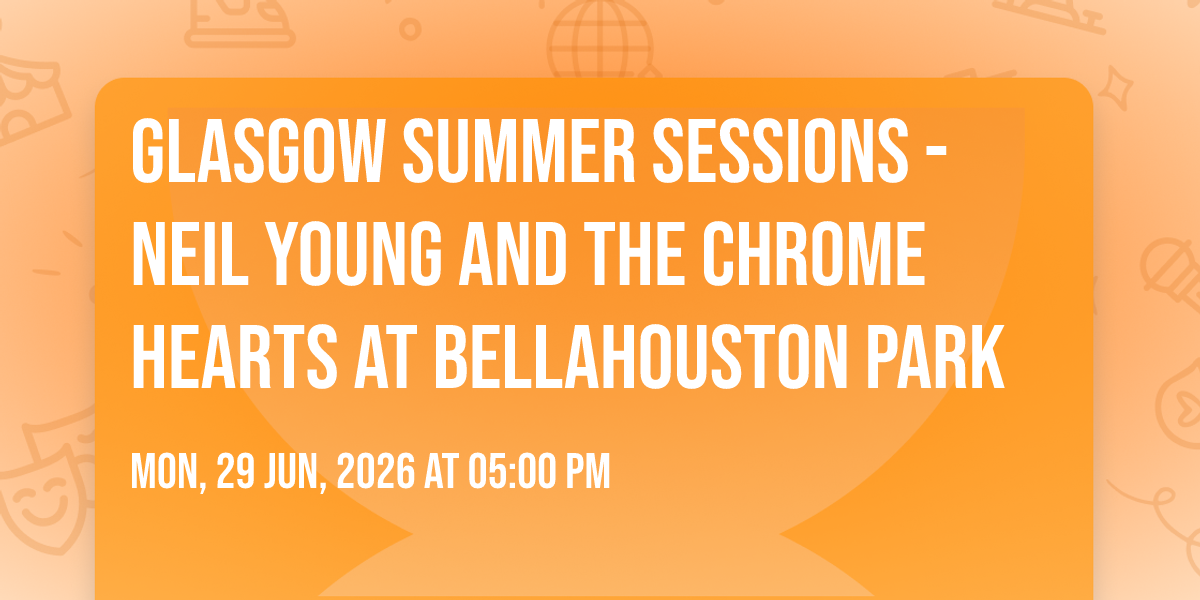 β¨ Discover the extraordinary at Glasgow Summer Sessions - Neil Young and The Chrome Hearts at Bellahouston Park, where magic meets reality in ways you've never imagined! ποΈ Set in Bellahouston Park nestled in bustling Glasgow, SC, this event promises to be a landmark occasion. π Taking place on June 29th, 2026 at 05:00 PM, it's going to create an atmosphere where every moment becomes a cherished memory. π Immerse yourself in an experience crafted with attention to every detail, designed to surprise and delight at every turn. They have worked tirelessly to ensure this event exceeds all expectations, bringing together elements of entertainment, innovation, and pure joy. π Don't miss your chance to be part of this remarkable journey!