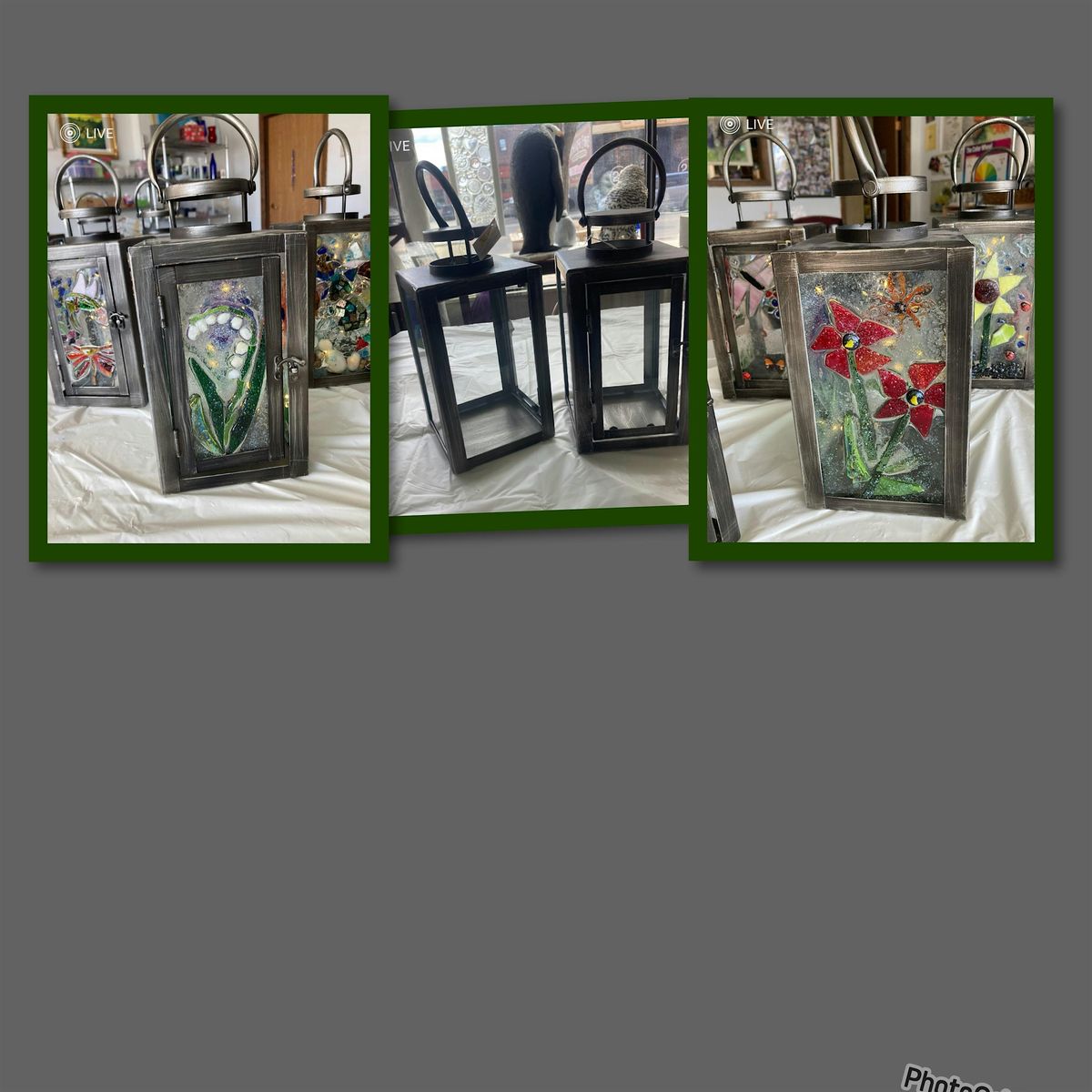 Decorate each panel in the lantern with glass pieces creating a unique design which is then finished with resin