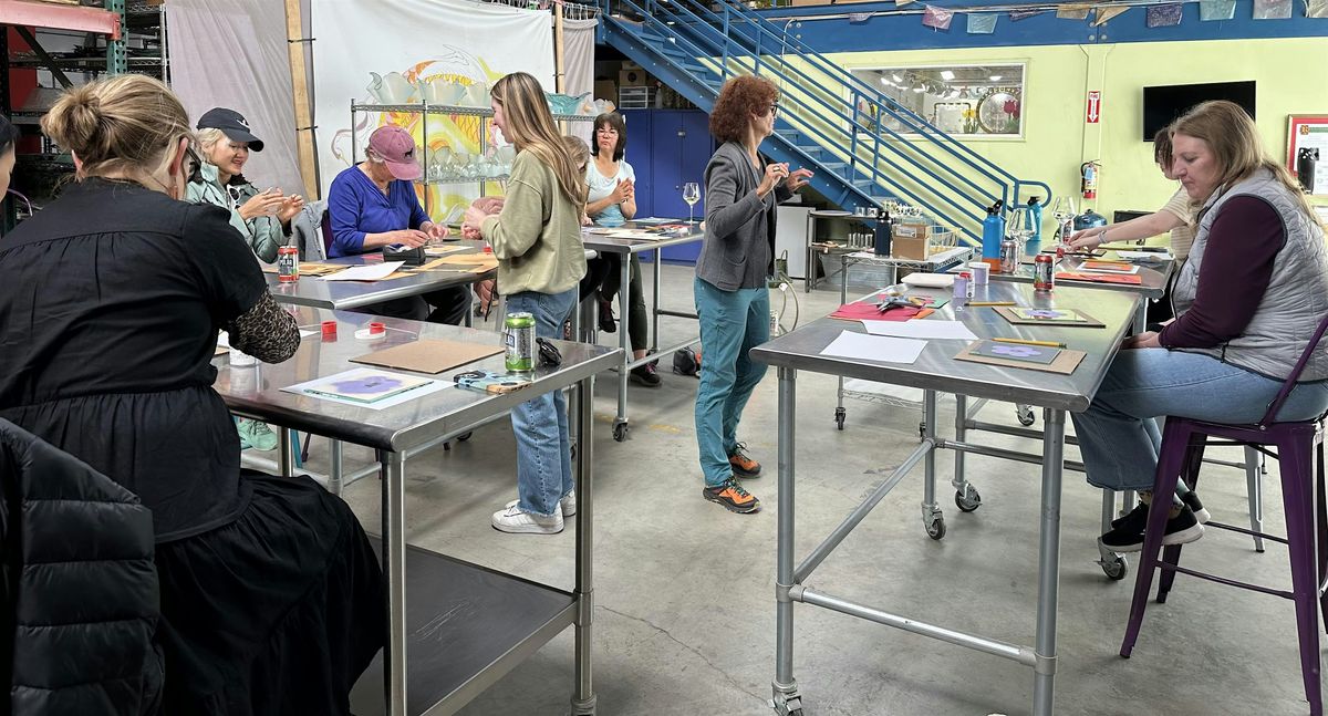 We provide everything you need—glass, stencils, colorful glass enamels, adhesive feet, and expert guidance throughout the process. You’ll design and decorate 4" glass squares, then load them into the kilns (don’t worry—they’ll be off!). We’ll fire your pieces for you, and you can pick them up later or have them shipped.