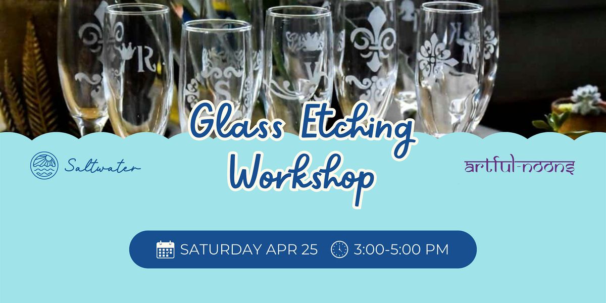 Join us for a relaxed, creative afternoon at Saltwater! This hands-on workshop is all about learning the art of etched glass design. You’ll create two custom pieces — choose from wine glasses or beer mugs — and walk away with something beautiful, personal, and completely usable.