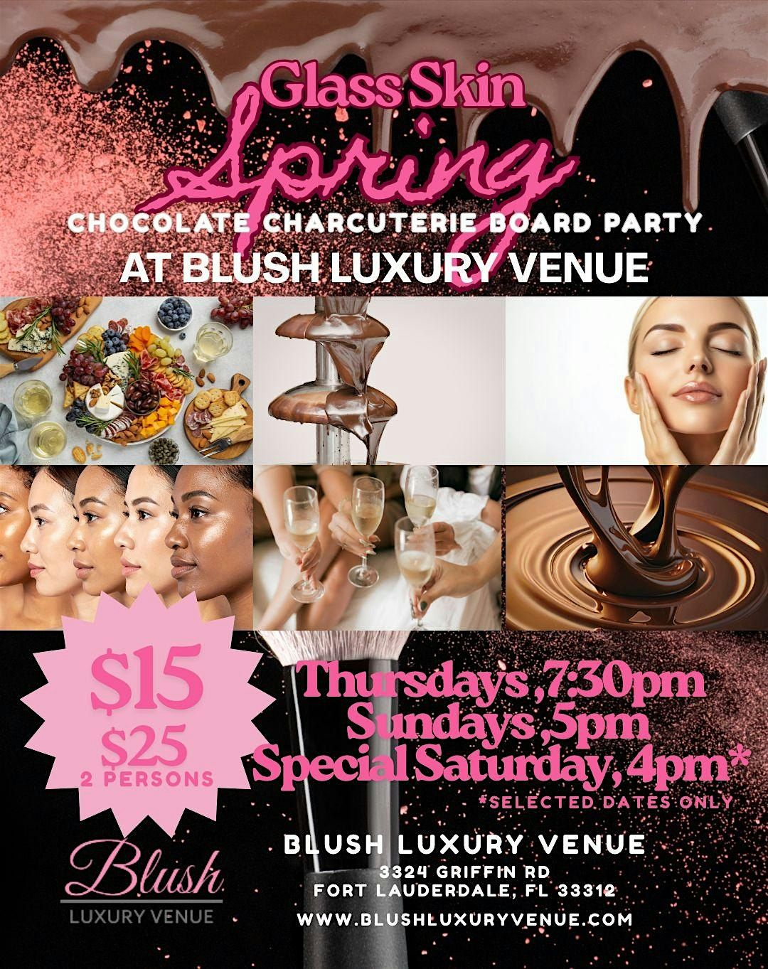 Join us at Blush Luxury Venue for our seasonal glow-up experience β the Glass Skin Facial Spring Chocolate Charcuterie Party π«π₯β¨