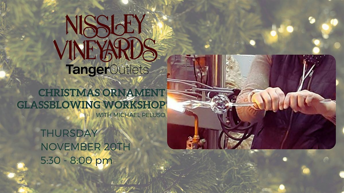 In this unique workshop, you will enjoy a basic glass-blowing experience. Join us as we prepare for the holiday season and create your own Christmas ornament! Perfect for beginners. Great idea for a date night! Your instructor, Michael Peluso, brings 20 years of experience and knowledge to help you experience the wonders of this 2,000-year-old craft.
