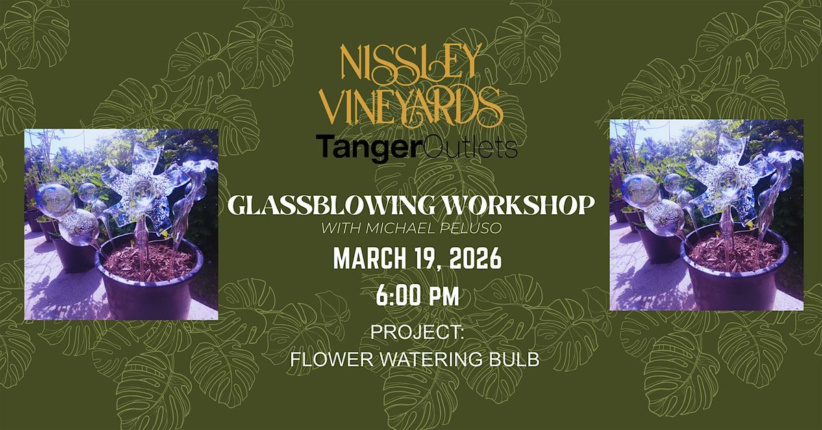 Celebrate the start of spring with a hands-on glassblowing experience at our Tanger Outlet Wine Shop & Tasting Room! In this interactive workshop, you’ll craft your very own flower watering bulb, a beautiful and practical addition to any potted plant. Whether you’re brand new to glassblowing or simply looking to try something creative, this beginner-friendly class is the perfect way to explore a timeless art form.