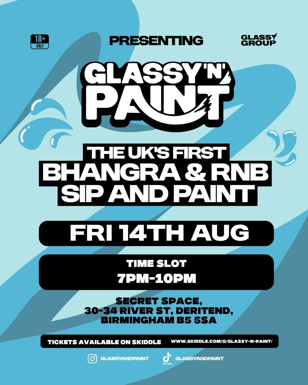 MORE TICKETS AVAILABLE ON SKIDDLESip, paint, and party with us. At Glassy ‘n’ Paint, you’ll clash brushes, snap pics with our famous glasses, and dance it out to Bhangra & RnB while creating a masterpiece that might just win you a prize. 🎶🎨📅 Date: 14th August 2026