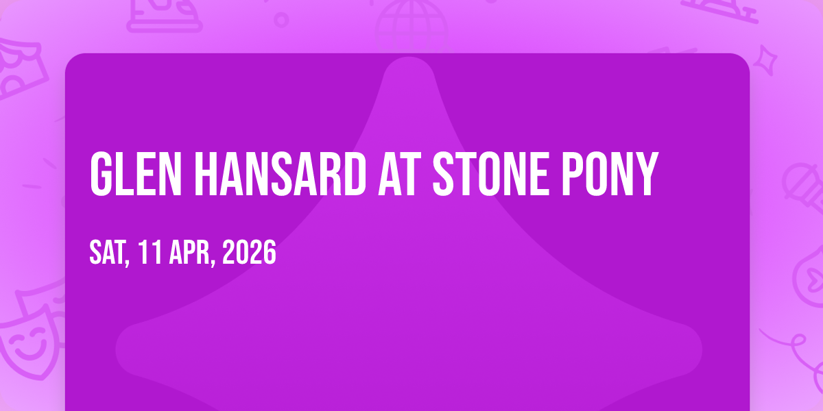 β¨ Enter a world of endless possibilities at Glen Hansard at Stone Pony, where every moment tells a story! ποΈ The stunning Stone Pony in vibrant Asbury Park, NJ transforms into a realm of wonder on April 11th, 2026 at 07:00 PM. π They have crafted an experience that goes beyond the ordinary, combining elements of surprise, delight, and pure entertainment. Every detail has been thoughtfully considered to ensure your journey with us is nothing short of extraordinary. π― Join fellow adventure seekers and memory makers in this celebration of imagination and innovation. π Reserve your spot today and be part of something truly special!