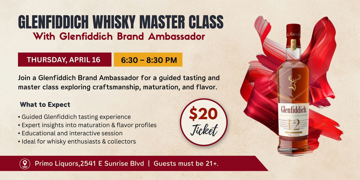 Join a Glenfiddich Brand Ambassador for an exclusive guided whisky tasting and educational master class. Discover the craftsmanship behind one of the world’s most iconic single malt Scotch whiskies while exploring maturation techniques, flavor development, and tasting methods.