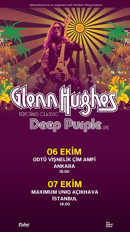 Glenn Hughes, the former bassist, and singer of Deep Purple, known to millions as the 'Voice of Rock', Rock and Roll Hall of Fame inductee, is pleased to announce his 2023 return to Turkey with his production, 'Glenn Hughes Performs Classic Deep Purple Live – Celebrating the 50th Anniversary of the album BURN'.Glenn will perform Deep Purple's legendary rock album "BURN" and will also perform Deep Purple MKIII and MKIV songs.