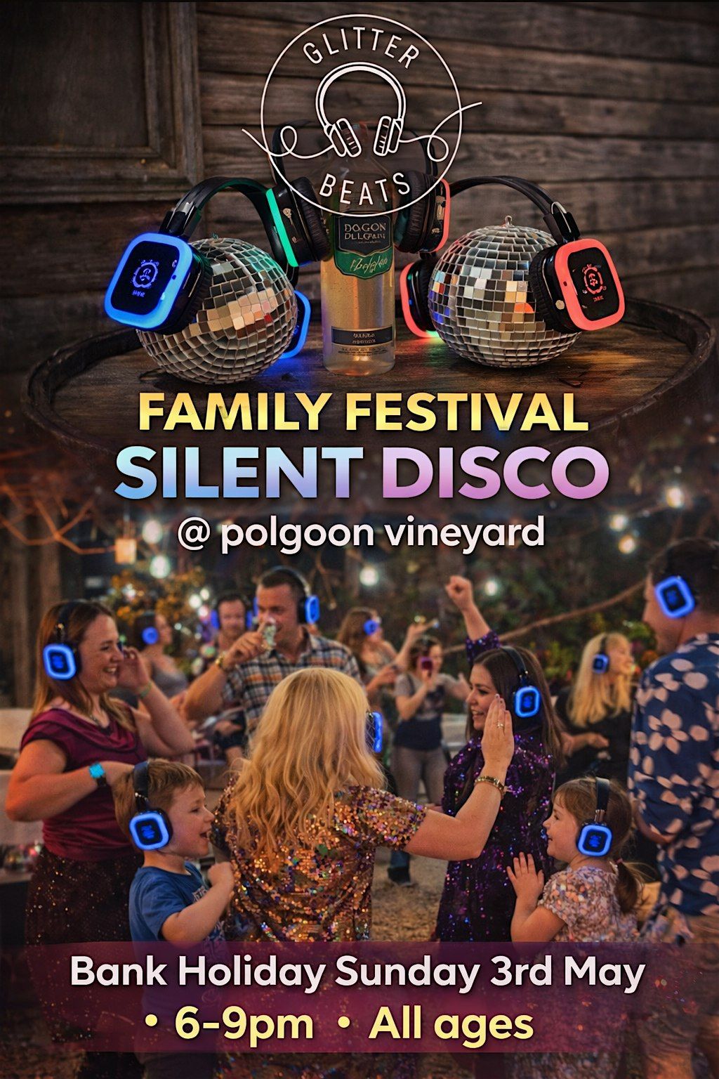 Join us on Bank holiday Sunday 3rd May at 6–9 PM for our Polgoon family fun silent Disco at Polgoon Vineyard— where the whole family can dance together!
