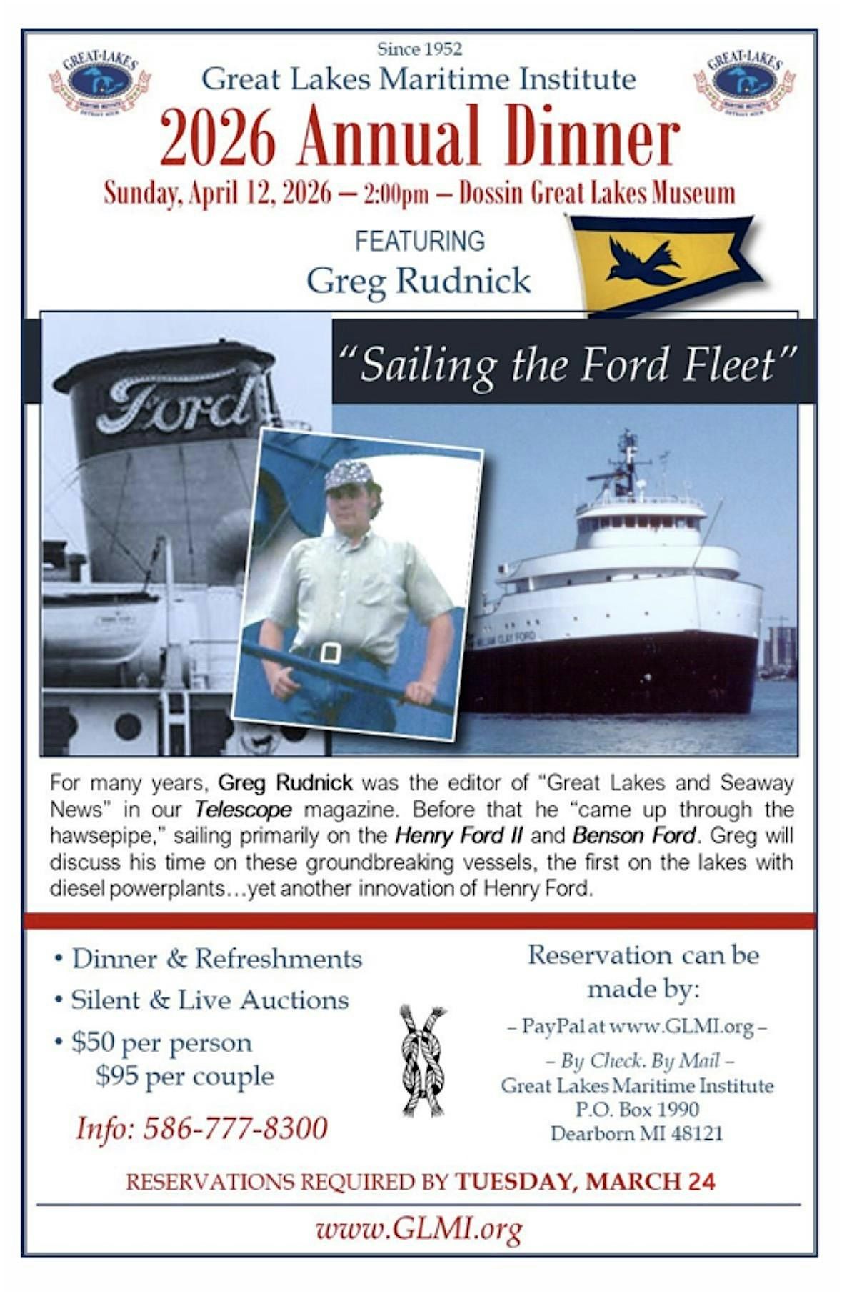 GLMI Dinner April 12 @2pm Dossin Great Lakes Museum-Detroit Belle Isle
