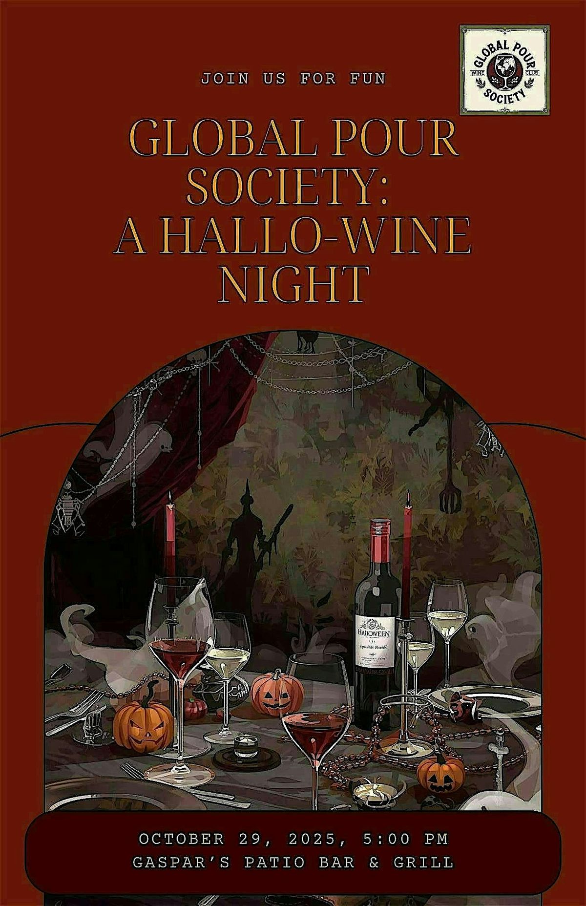 Celebrate Halloween with fellow wine lovers at our inaugural Global Pour Society gathering. Enjoy curated wine selections, festive bites, and a little spooky fun!