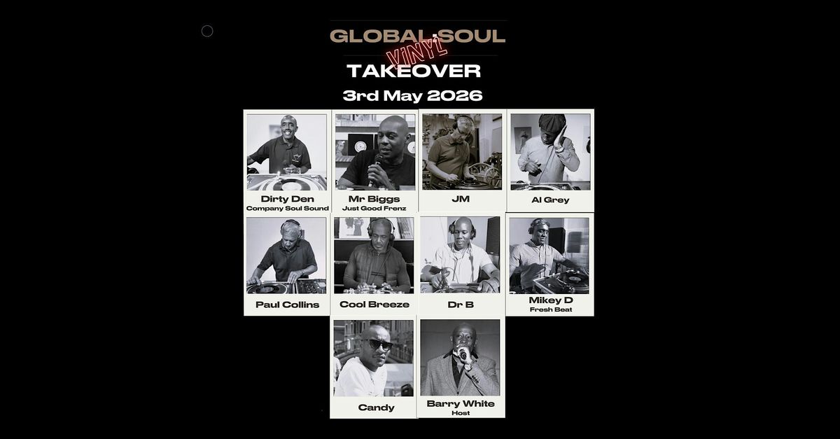 After the success of the first one in 2025 which SOLD OUT we are back by popular demand, the Global Soul Rare Soul Selectors coming together for a special all day Connoisseurs Soul Session playing Rare Groove & Steppers from back in the day. We go down memory lane to the House Parties, Dances and Shubeens playing tunes you have not heard for a minute! Vinyl business all the way from some of the most renowned London selectors with a long history and pedigree in the game with deep collections.