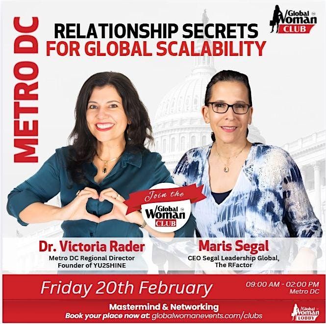Whether you're a seasoned professional aiming to scale new heights or an aspiring entrepreneur ready to disrupt the market, Global Woman Club Metro DC is your launchpad for business growth and exceptional networking with trailblazing business owners and investors.Join us to cultivate powerful relationships, seize invaluable connections, and learn from dynamic guest speakers. Discover how to overcome challenges, venture into new opportunities, and build thriving enterprises from the ground up.