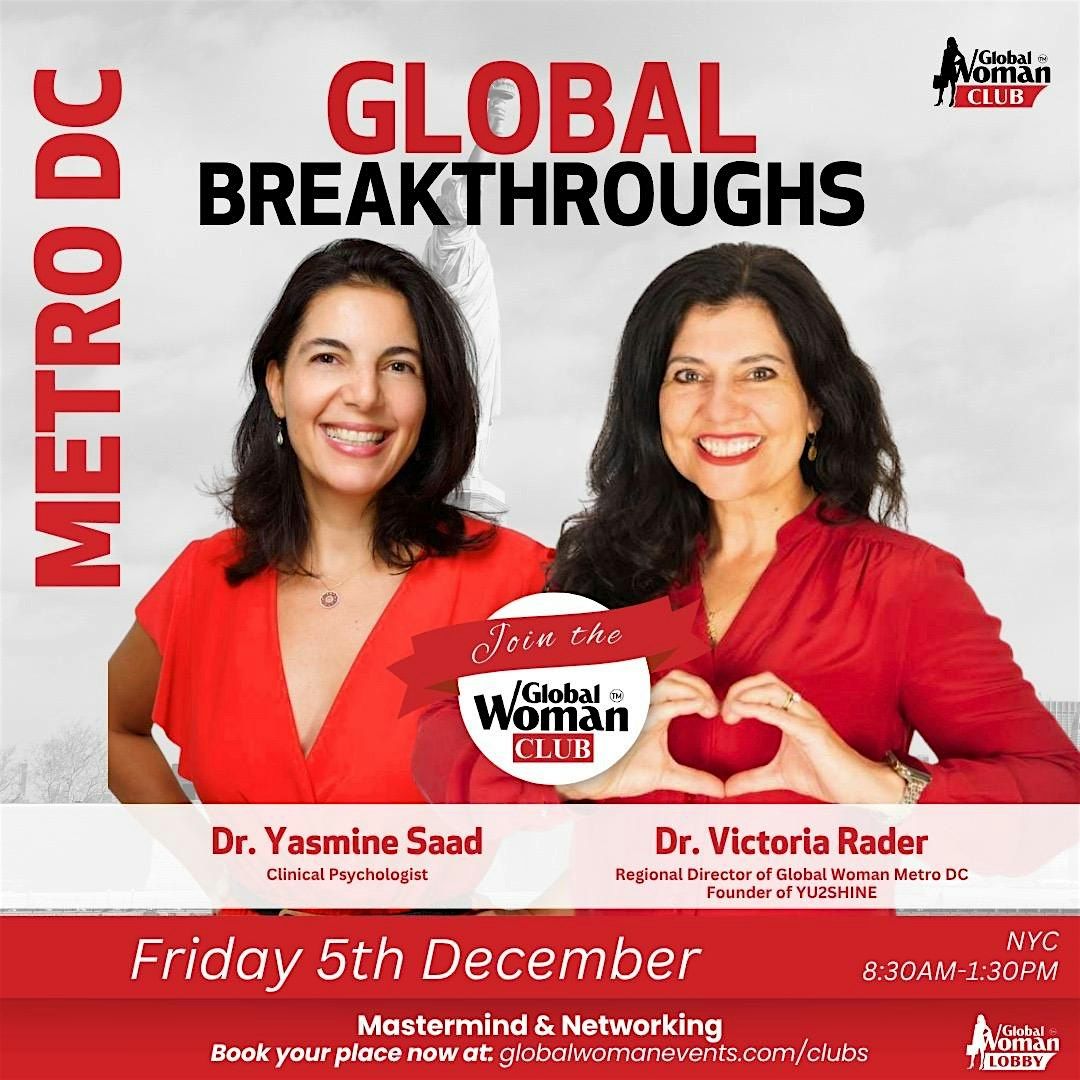 Whether you're a seasoned professional aiming to scale new heights or an aspiring entrepreneur ready to disrupt the market, Global Woman Club Metro DC is your launchpad for business growth and exceptional networking with trailblazing business owners and investors.Join us to cultivate powerful relationships, seize invaluable connections, and learn from dynamic guest speakers. Discover how to overcome challenges, venture into new opportunities, and build thriving enterprises from the ground up.