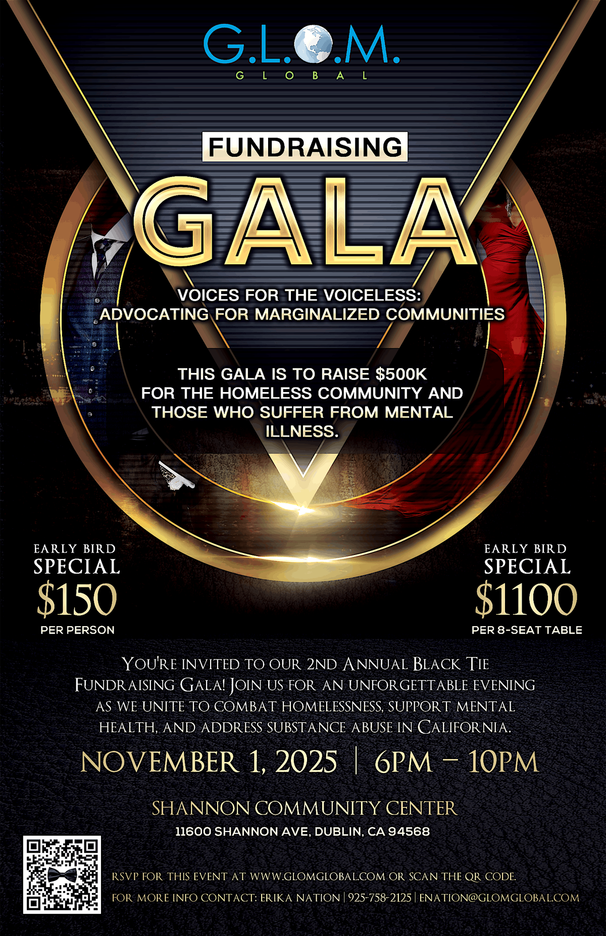 G.L.O.M. Global is a non-profit organization tailored to catering to the needs of those who suffer from mental health, substance abuse and homlessnes. This purpose of the Fundraising Gala is to raise $500K for the homelss community and those who suffer from mental illness.