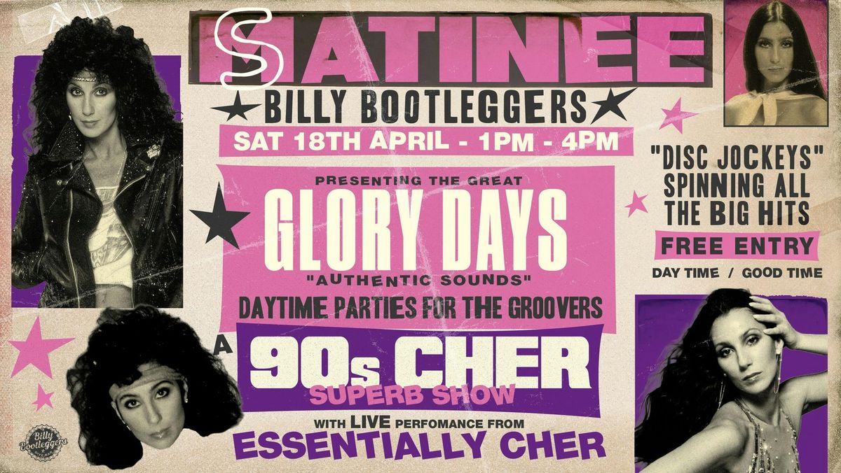 We're taking you back to the Glory Days of music with our Disc Jockeys spinning all the biggest 90s Cher hits!!PLUS a LIVE PERFORMANCE from "Essentially Cher" - Tribute Act