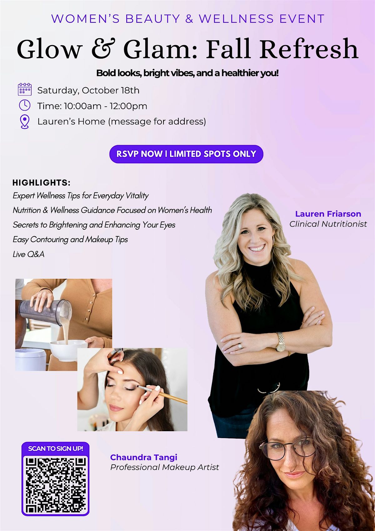 Join us for an inspiring Women’s Beauty & Wellness Event designed to help you feel radiant inside and out this fall. From expert nutrition guidance to pro makeup techniques, you’ll leave with practical tips, glowing energy, and a refreshed outlook.
