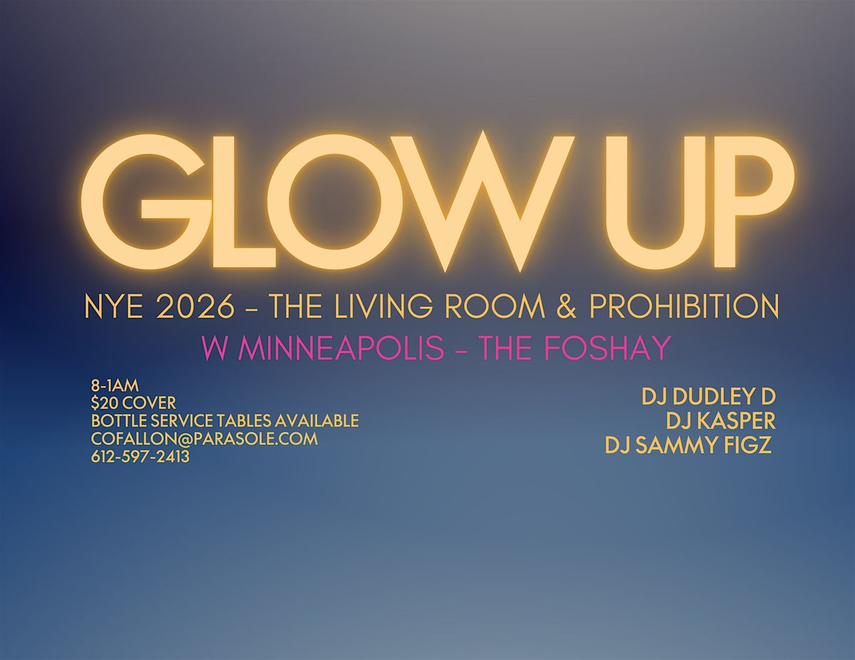 Welcome to Glow up- NYE 2026! Get ready to ring in the New Year in style at the Living Room & Prohibition. Join us on December 31, 2025 8:00 PM- 1:00AM for a night full of fun and excitement. DJ Dudley D, DJ Kasper & DJ Sammy Figz Let's celebrate together in our new space.