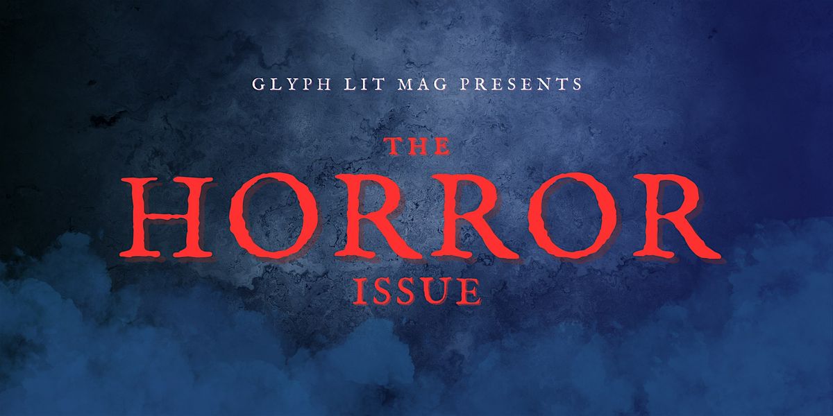 Welcome to Glyph. Lit Mag presents Issue 5: Horror! Join us at Dram! on May 21, 2026 at 7pm for an eerie evening of haunting tales.