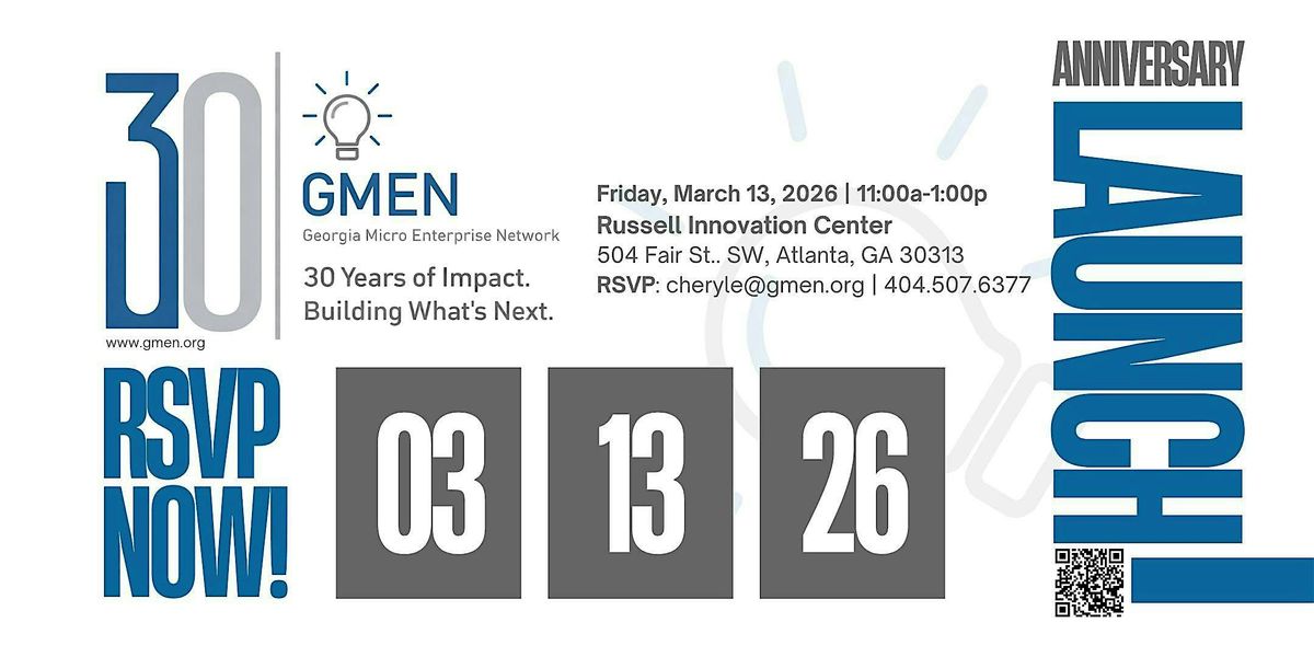 Join the Georgia Micro Enterprise Network in kicking off our 30 years celebration of serving entrepreneurs across Georgia and the Southeast.