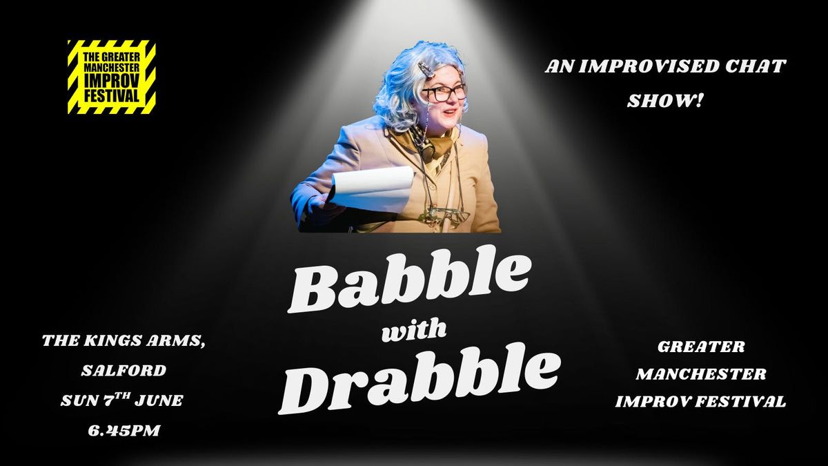 Babble with Drabble — with Cynthia Drabble. She's a pocket-sized rocket with a twinkle in her eye and questions for everyone. She loves to babble on about crown green bowling, her godson Neville, and controversial biscuits. In her improvised chat show, Cynthia turns her curiosity on you, inviting audience members to talk about their specialist subjects. Could be vintage trains to vegan baking (who knows!) but expect daft questions, warmth, and big laughs as Cynthia dives deep into whatever makes you tick. Think Mrs Merton — but Scouse, unscripted, and gloriously unpredictable. Performed by Emma Bird, founder of Liverpool Comedy Improv.This show is part of the Greater Manchester Improv Festival (GMIF) 5th-7th June 2026. From up and coming acts to award-winning show the festival showcases local talent and visiting shows. For the 2026 festival there are 20 shows and 4 workshops with tickets for all shows just £5! Once you've done booking a ticket for this one, why not check out all the other fantastic shows too?