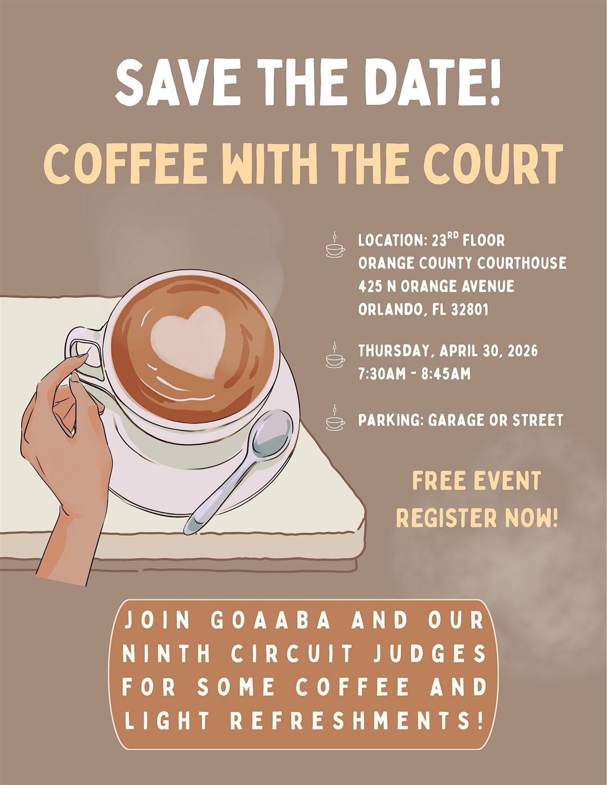 Get ready for great networking opportunity with esteem judges of the Ninth Judicial Circuit. This a perfect chance to connect, ask questions, and get to know the judges behind the bench.
