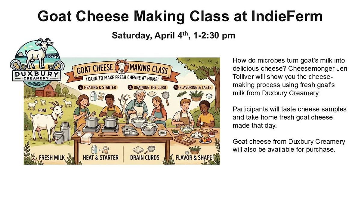 Participants will taste cheese samples and take home fresh goat cheese made that day.
