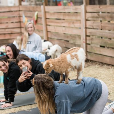 Goat House Farm opens its pastures to welcome the practice of yoga with their playful goats.