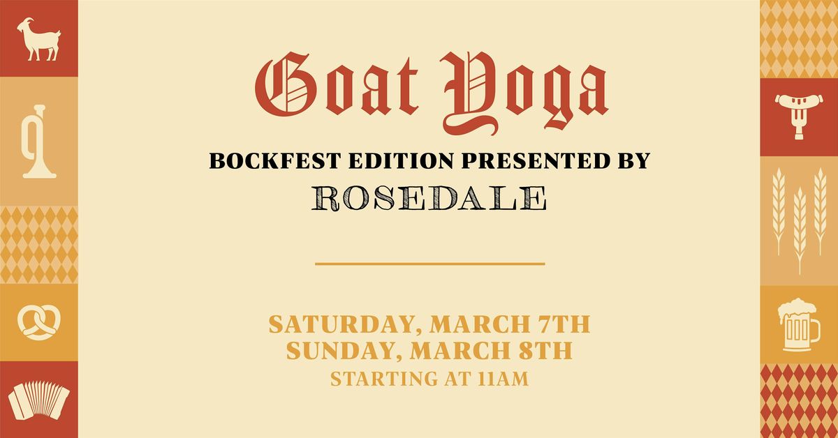Rosedale OTR and Yogoat Cincinnati are teaming up to bring TWO special Bockfest editions of Goat Yoga on Saturday, March 7th and Sunday, March 8th! We'll be hosting one session each day at 11am. Tickets include a 45-minute yoga class accompanied by 4+ baby goats and your choice of a post-workout bock beer or mimosa!