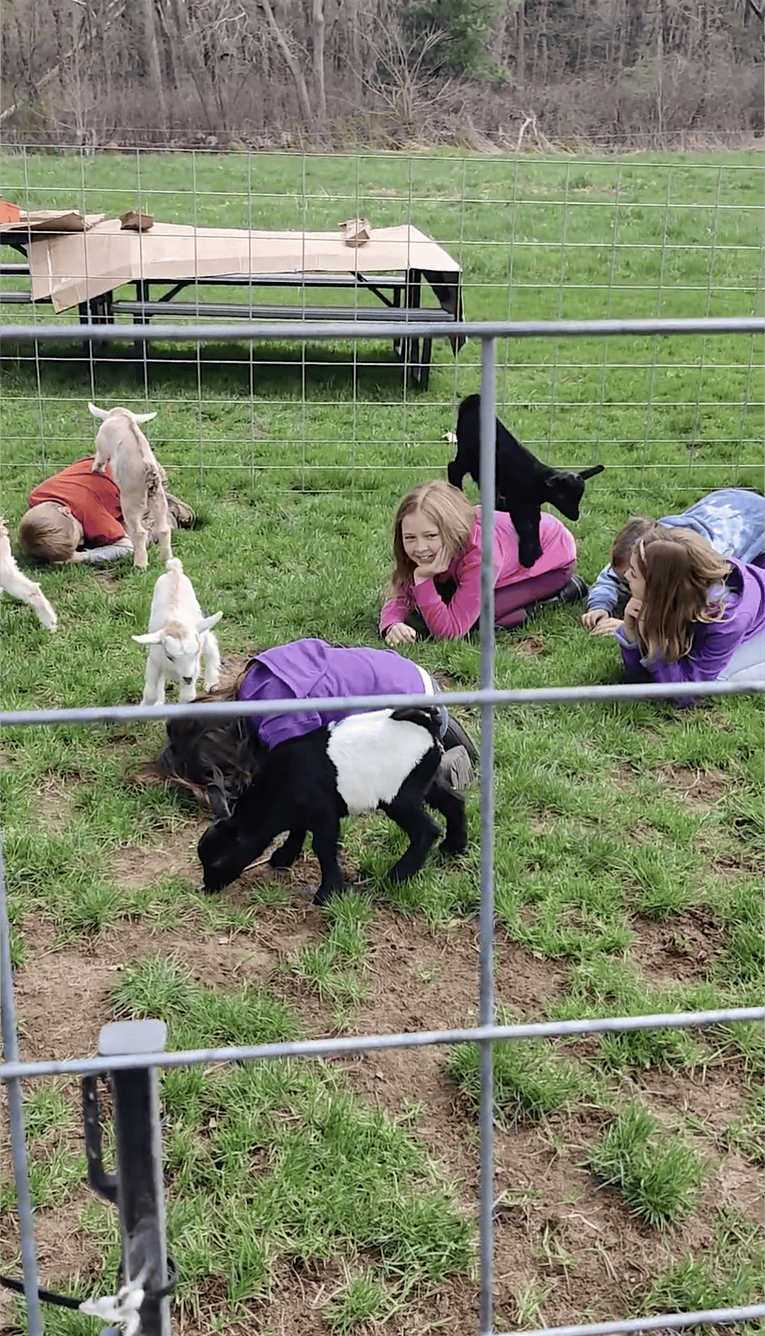 A cuddle session with brand new baby goats, known as kids, for human kids!
