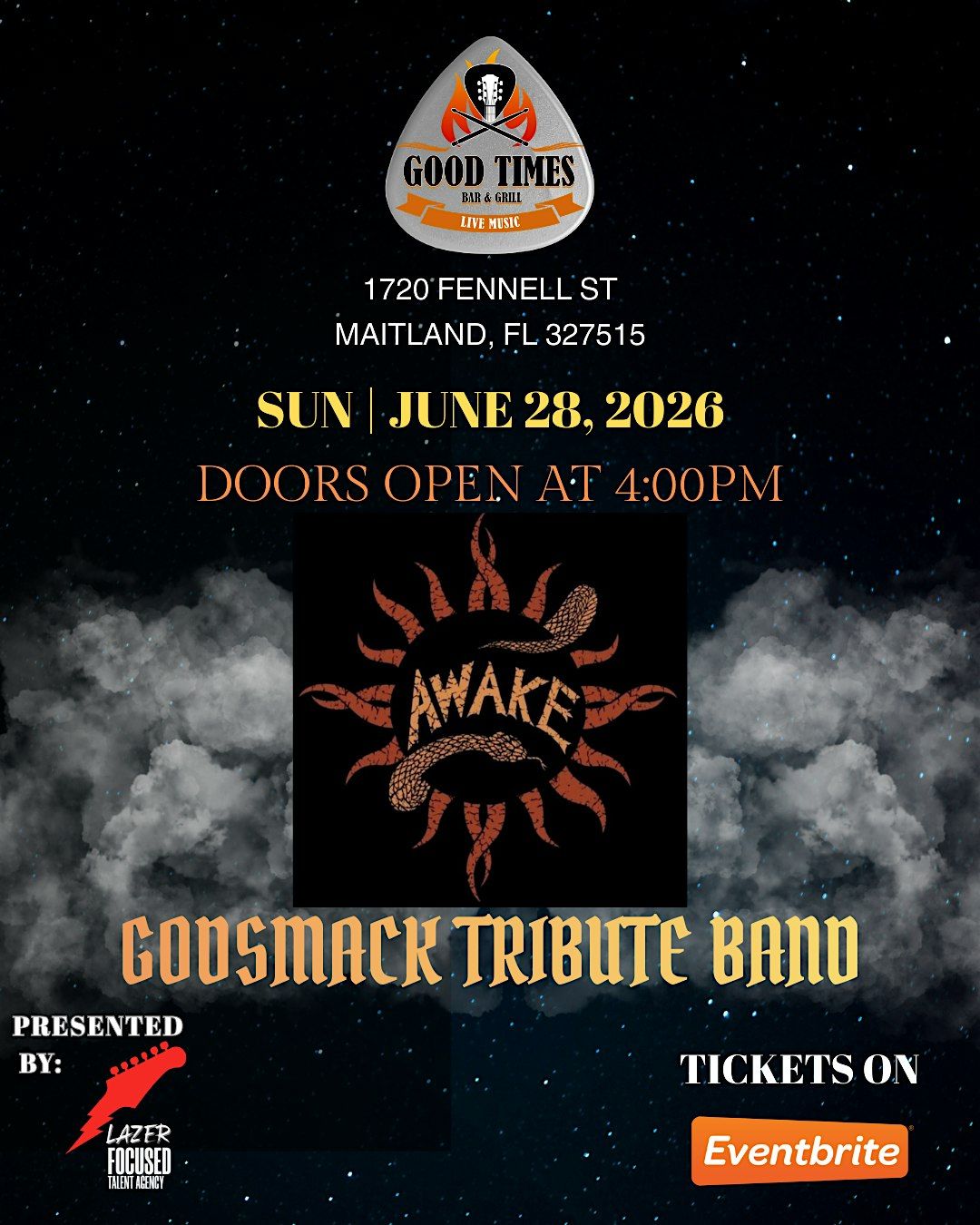 Join us in person for an epic night paying homage to the legendary Godsmack. AWAKE brings all the hard-hitting hits and raw energy you love, live and loud! Don’t miss out on this killer tribute experience that'll have you rocking all night long. Bring your crew, feel the vibe, and let's make some noise together!