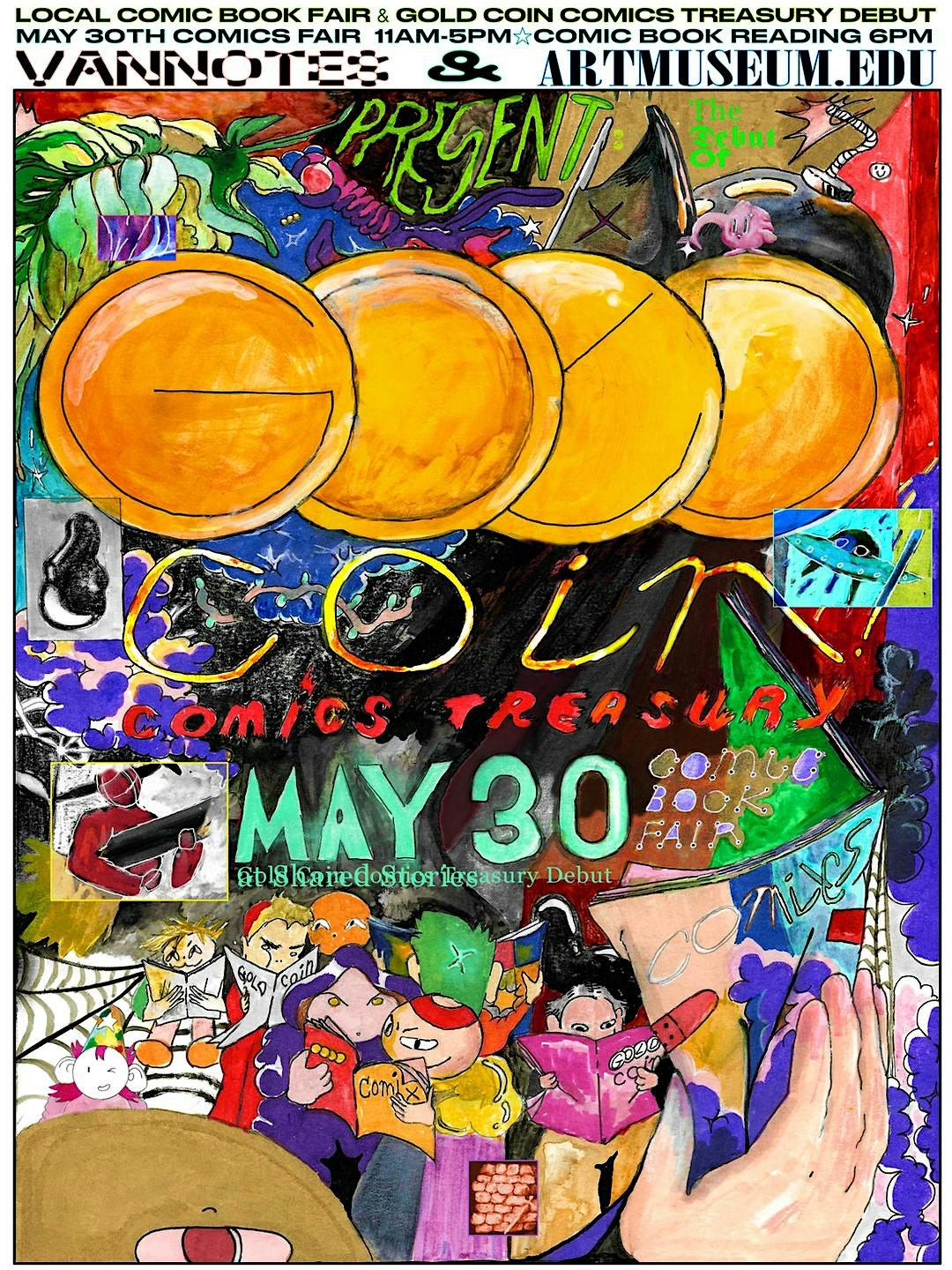 Come celebrate Gold Coin Comics Treasury Issue 1's release put out by @vannotesbooks’ Seasonal Produce Publishing, featuring local Treasure Valley Creators. The editors for this publication are Vannotes and @artmuseum.edu_. The theme for the inaugural publication is pulp fiction, dime novels, and 10 cent comics.