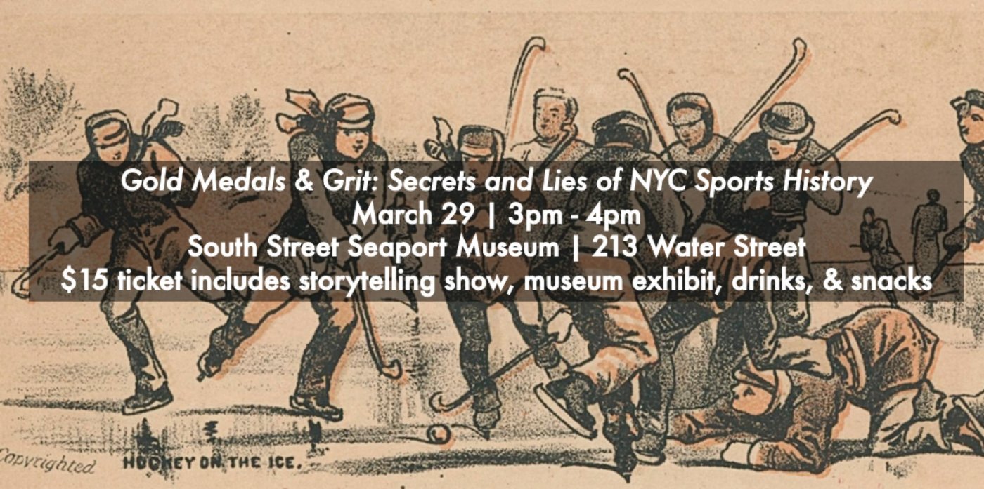 TICKETS ARE REQUIRED: Your $15 ticket includes the show, museum admission, drinks, and snacks. Please purchase your tickets directly through the South Street Seaport Museum at: https://southstreetseaportmuseum.org/sports-secrets-lies/