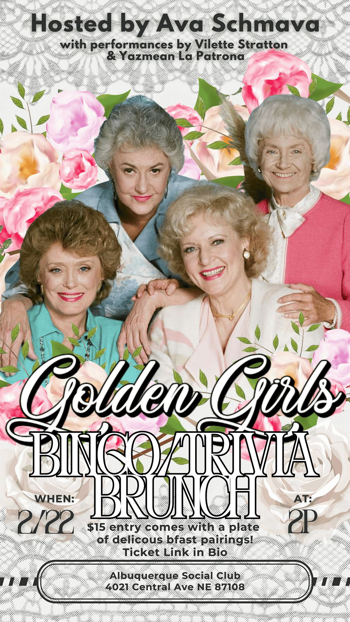 We'll watch 3 QUINTESSENTIAL Golden Girls episodes while we gab about the ladies and play some Bingo and Trivia!