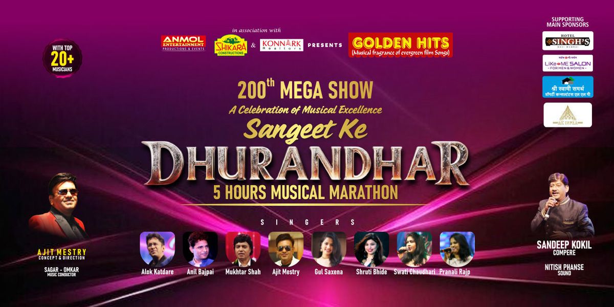 Every note from that era reflected purity of melody and mastery of classical roots, supported by meaningful lyrics and unforgettable compositions. These songs transcended time, language, and age, continuing to resonate even today. Golden Hits—"Sangeet ke Dhurandhar” is a heartfelt tribute to those musical giants, recreating the same magic on stage with respect, authenticity, and passion—allowing audiences to relive the golden moments when music truly ruled hearts.