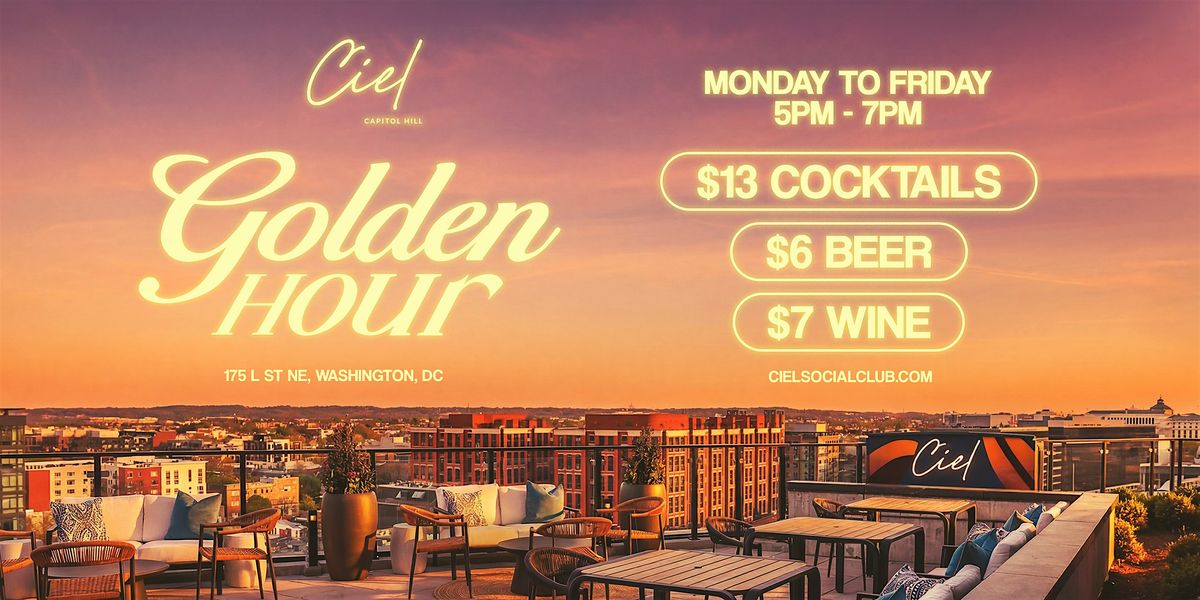 Golden hour is the best hour. Join us Monday to Friday from 5pm-7pm at Ciel Capitol Hill for the happiest of hours, featuring $13 cocktails, $7 select wines, $6 beer, and seasonal food specials.