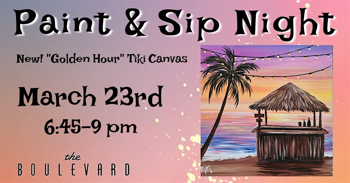 Welcome to the Golden Hour Tiki Canvas Paint Night! Join us at Boynton Beach Boulevard on March 23, 2026 at 6:45 PM for a fun-filled evening of painting and creativity. Let your artistic side shine as you create your very own masterpiece on canvas.