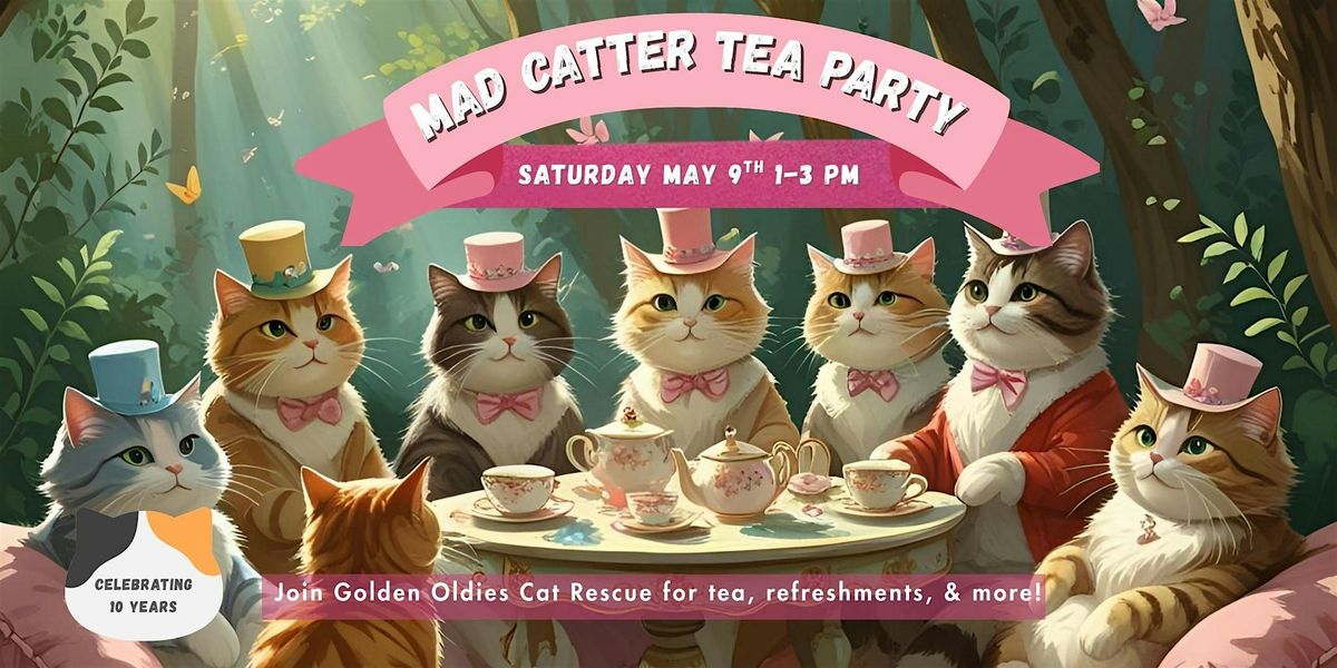 Join us for the 2nd Annual Golden Oldies Cat Rescue Mad Catter Tea Party Fundraiser! This year is extra special as we celebrate 10 years of saving older cats.